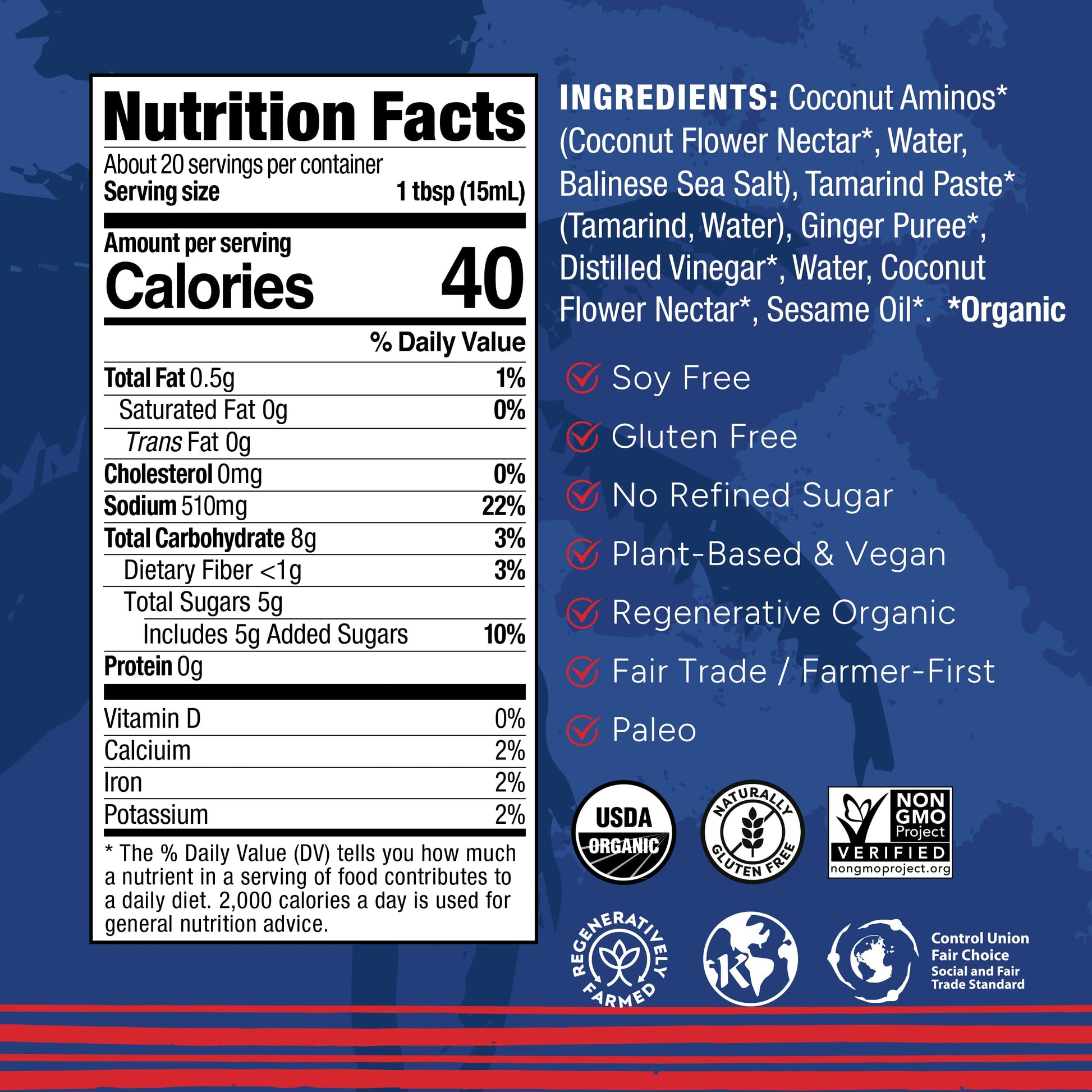 - CLEAN AND HEALTHY INGREDIENTS - Crafted with Organic Coconut Flower Blossom Nectar and Balinese Sea Salt. Free of artificial preservatives, artificial flavors, and with half the sodium of soy sauce