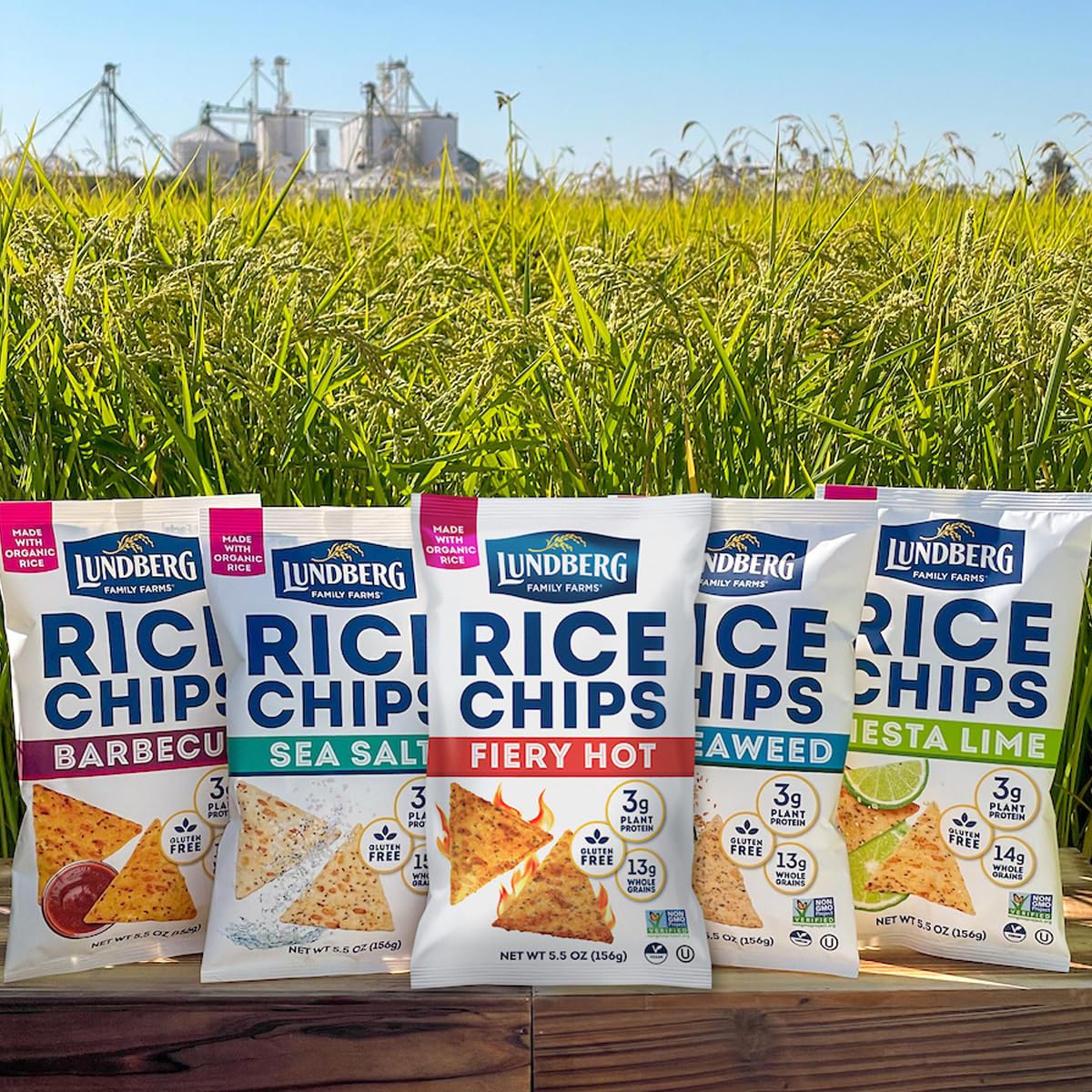 Lundberg Rice Chips, Sea Salt 12-Pack – Plant-Based Snacks Made with Organic California Brown Rice, Pea Protein & Chia Seeds, 5.5 Oz Ea