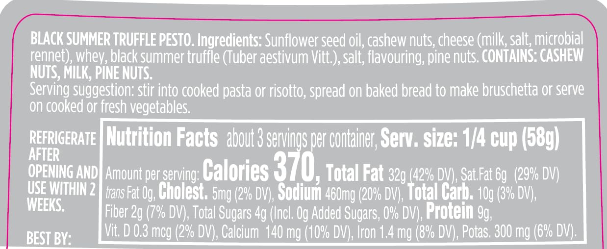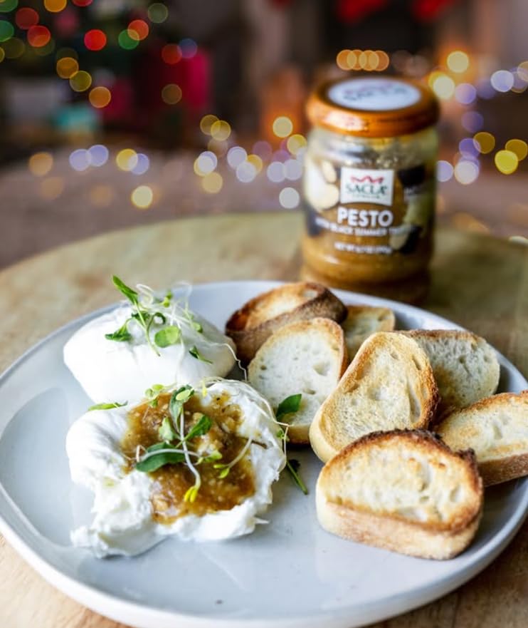 SACLA Pesto with Black Summer Truffle | Italian Basil Pesto Sauce with Real Truffle & Cheese | 6.7 oz Glass Jar | Gourmet Non-GMO Paste | Imported from Italy